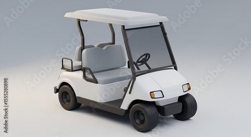 Fototapeta premium A white golf cart with a roof and two seats is displayed against a neutral...