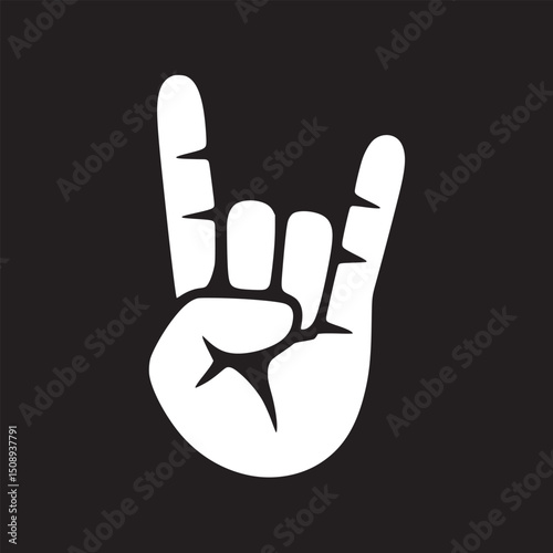 © Syed 39, Fototapeta premium A white hand making the rock and roll sign on a black background in a minimalist style design art