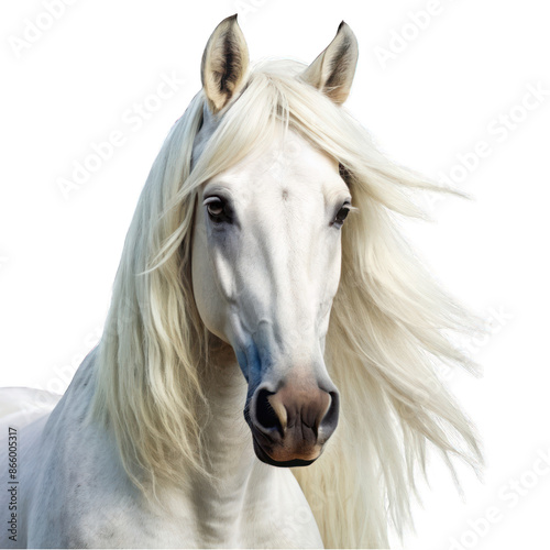 Obraz premium A white horse with a long mane portrait isolated on transparent background