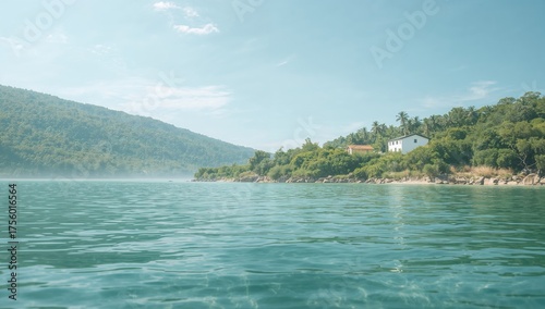 Fototapeta premium A white house surrounded by natural water textures symbolizing health and...