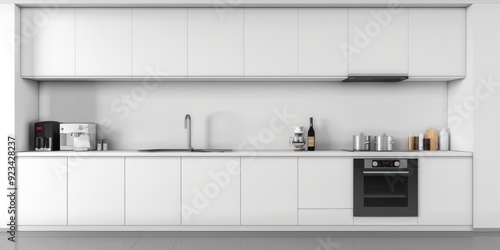 © Annamorphosis, Fototapeta premium A white kitchen with a black oven and a sink