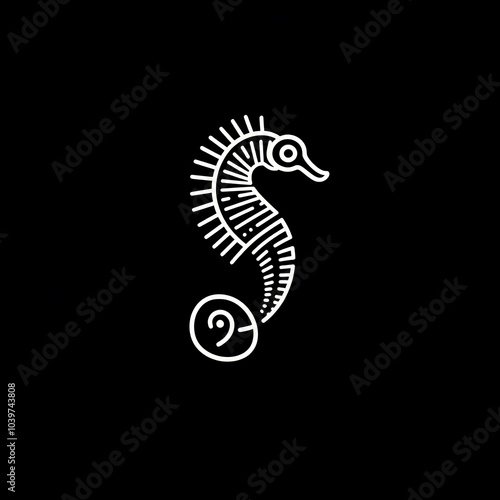 © Raffaza, Fototapeta premium A white line drawing of a seahorse on a black background.