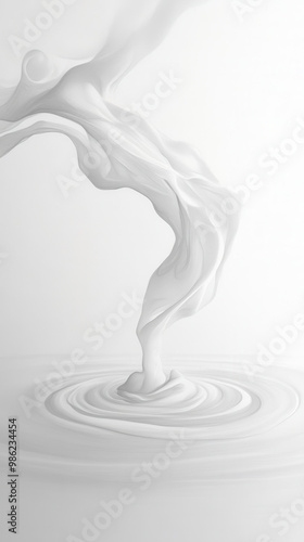 © SynthArt BWG, Fototapeta premium A white liquid is pouring out of a container and splashing into a circular pool