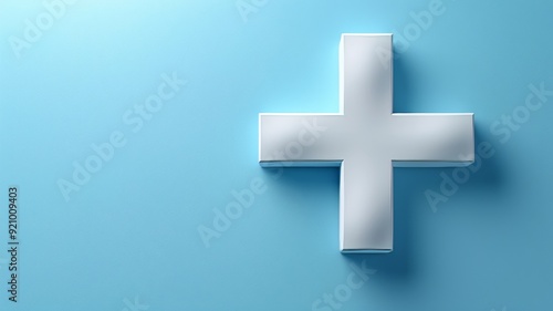 Fototapeta premium A white medical cross symbol on a soft blue gradient background