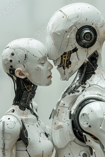 © Pixels , Fototapeta premium a white minimal design robot, creating another robot, in tech background, cinematic