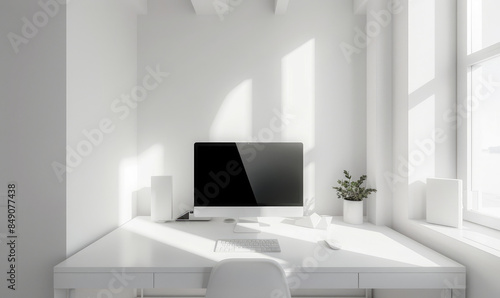 © piai, Obraz premium A white minimalistic computer desk
