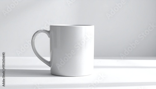 © Fino, Obraz premium A white mug on a white surface with a plain background