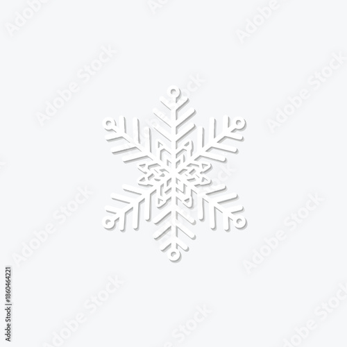 © Funky, Fototapeta premium A white paper snowflake with shadow effect against a plain white background