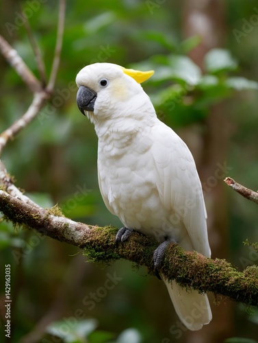 Fototapeta premium A white parrot sitting on a branch in a tree