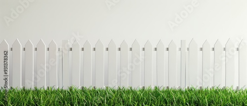 © Napat.T, Fototapeta premium A white picket fence with green grass in between