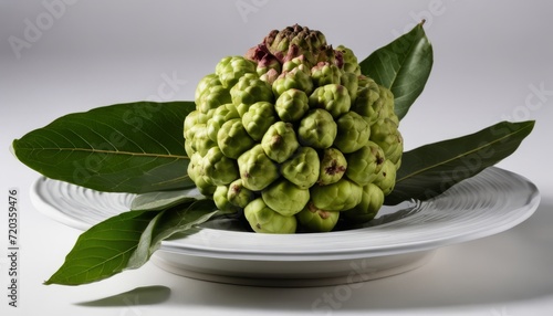 © vivekFx, Fototapeta premium A white plate with a green fruit on it