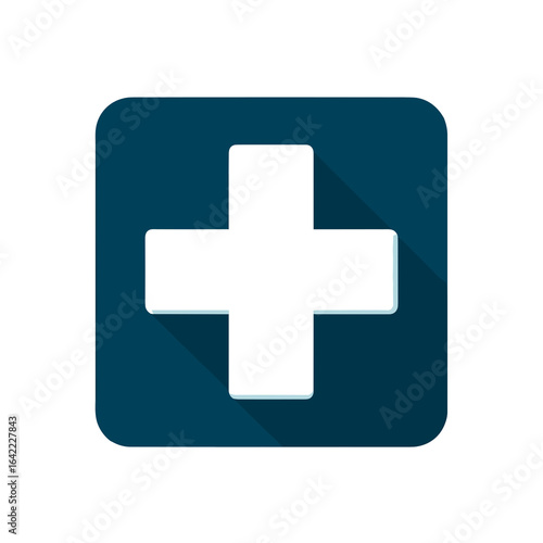© Argeu, Obraz premium A white plus sign centered on a rounded square with a dark blue background and a subtle shadow effect