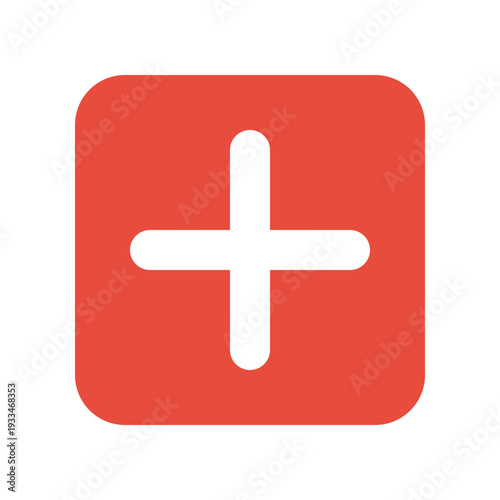 © universal Stockist, Fototapeta premium A white plus sign on a red square icon on a plain background
