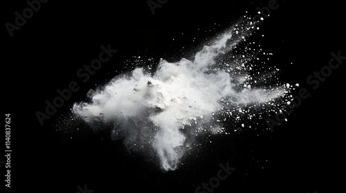 Fototapeta premium A white powder explosion on a black background, creating a colorful cloud of dust.