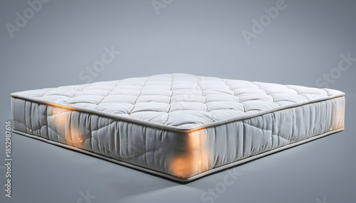 Fototapeta premium A White Quilted Mattress with Orange Accents and a Gray Background Showing...