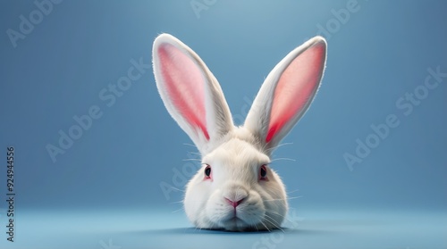 © Aftab, Obraz premium A white rabbit ear set on a soft blue backdrop. Easter Monday. three-dimensional rendering
