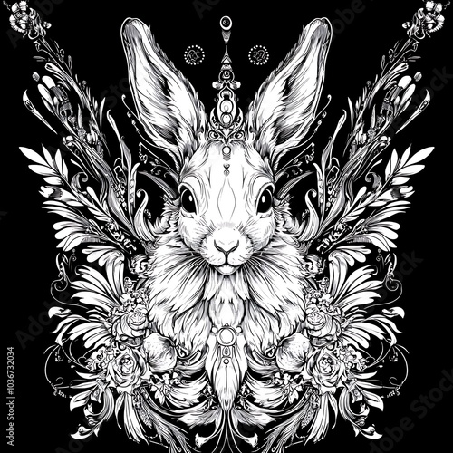 © Raffaza, Obraz premium A white rabbit in a decorative ornate frame.