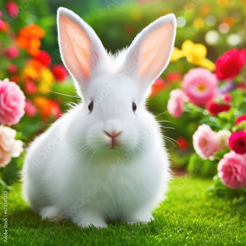 © Sohel, Fototapeta premium A white rabbit in a garden