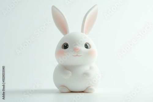 © Olga, Obraz premium A white rabbit is sitting on a white background