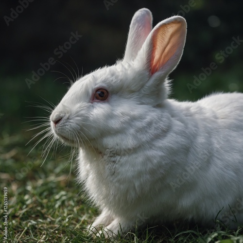 © Kashif, Fototapeta premium A white rabbit tilting its head to one side, appearing curious.