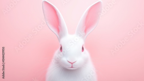 © Marsor, Obraz premium A white rabbit with pink ears is staring at the camera