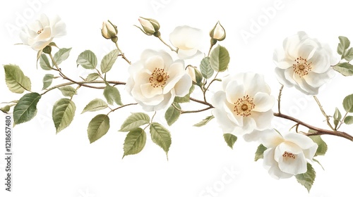 Fototapeta premium A white rose branch standing alone.