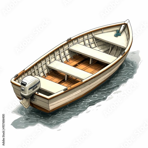 Obraz premium A White Rowboat With Outboard Motor On Water