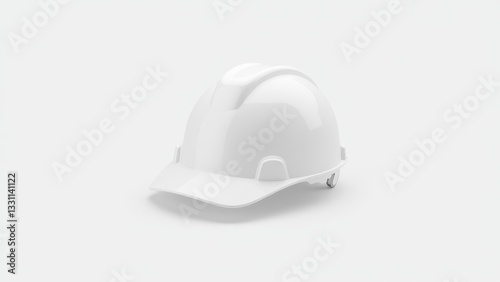 Fototapeta premium A white safety hat with a smooth, glossy finish, designed for head protection...