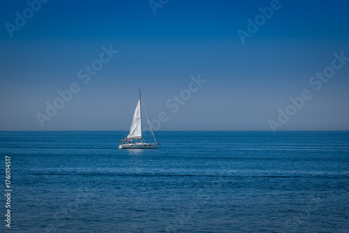 © mustafaoncul, Obraz premium a white sailboat is sailing. open sea.