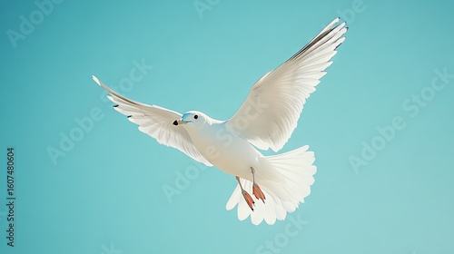 © Kateryna Kordubailo, Obraz premium A white seagull with its beak open against a clear blue sky, capturing the essence of bird life