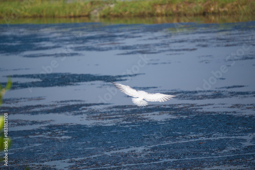 Fototapeta premium A white seagull with outstretched wings.
