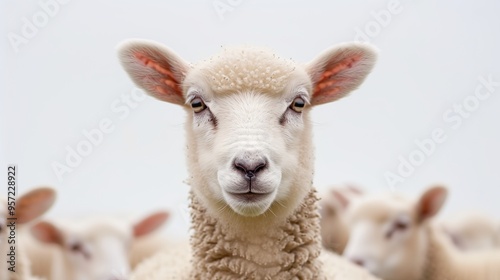 © Pixora Labs, Fototapeta premium a white sheep peeping out, isolated on a white background
