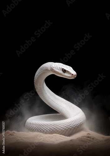 Fototapeta premium A white snake is curled up on the sand
