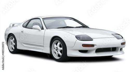 © Korawan, Obraz premium A white sports car is parked on a white background
