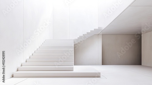 Obraz premium A white staircase leading to a white platform, capturing the simplicity and...