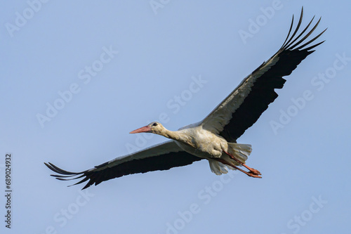 © Stefan, Naklejka premium A White Stork in flight blue sky