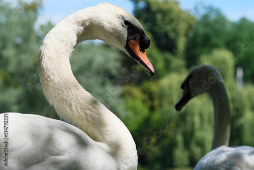 Obraz premium A white swan on a green grassy