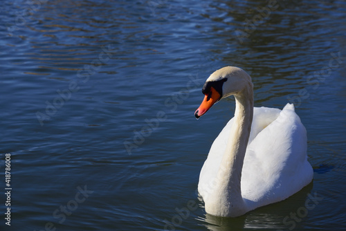 © leopictures, Fototapeta premium A white swan swims in blue water