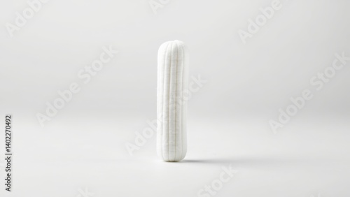 Naklejka premium A white tampon standing upright on a light grey background, symbolizing...