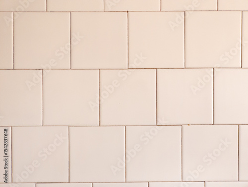 © VISUAL BACKGROUND, Naklejka premium A white tiled wall with a white brick pattern