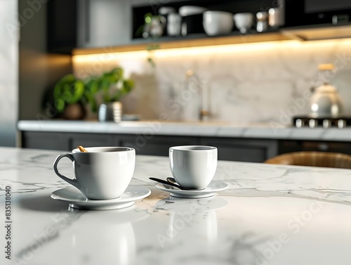 © Mahmud Creative, Obraz premium A white vase with flowers and two cups on a table