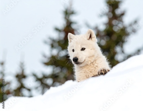 © Bapak, Naklejka premium A white wolf pup in snow
