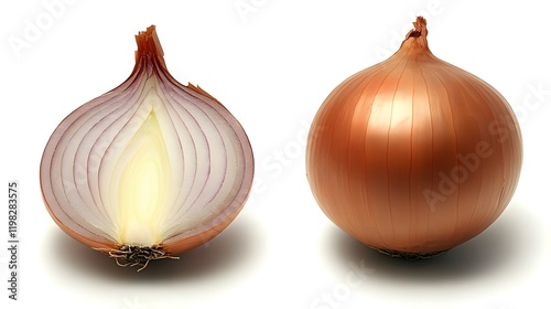© Mahmulatin, Obraz premium A whole onion and a halved onion are shown