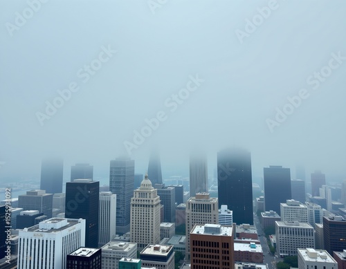 © Anajak, Fototapeta premium a wide angle view of a city skyline under an overcast sky
