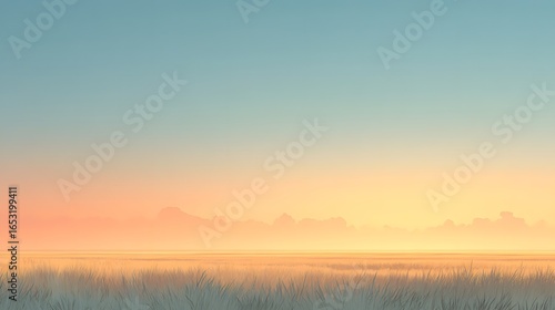 Obraz premium A wide empty grassland horizon fading into a calm gradient sky