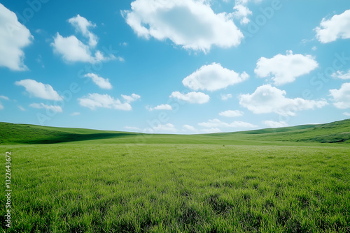 © Kibum, Fototapeta premium A Wide, Expansive Green Lawn Under Natural Lighting