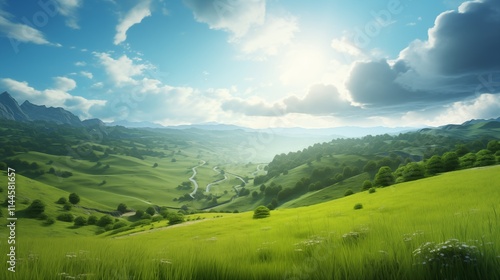 © iAmP, Fototapeta premium A wide open desert with backlighting, room on the right for text or design,generative ai illustration