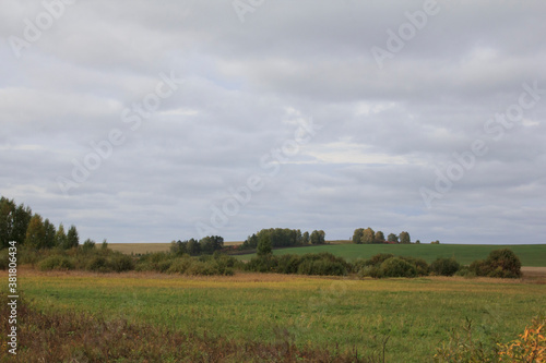 Obraz premium A wide space opens up to the eye. Autumn landscape - fields and birches with...