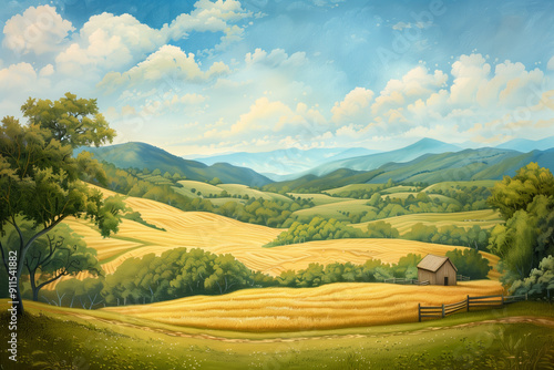 © Jacek, Fototapeta premium A wide view of an idyllic countryside landscape.