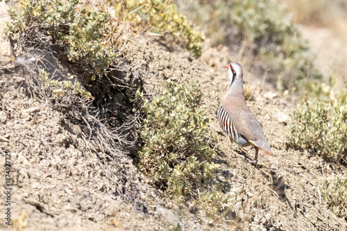Obraz premium A wild chukar grazing in a wilderness area in Colorado.